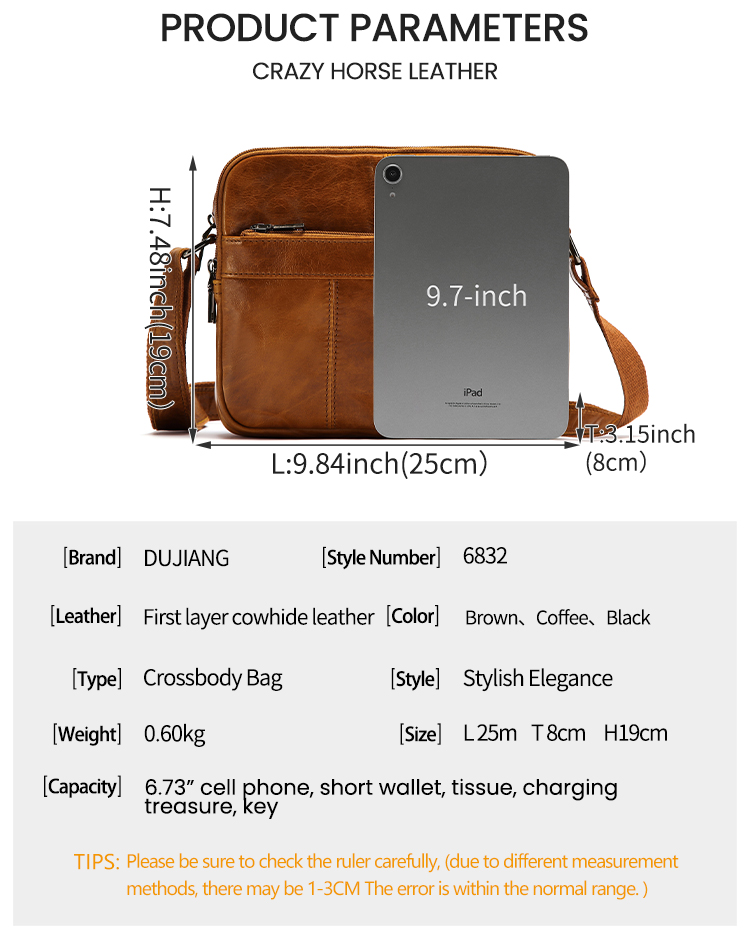 DUJIANG’s commitment to craftsmanship is evident in every detail of the 6832 crossbody bag. The use of first-layer cowhide leather not only enhances its longevity but also gives it a distinctive, premium feel that sets it apart in the market. As the brand continues to prioritize quality and design innovation, the 6832 model reflects DUJIANG’s ethos of delivering accessories that meet both aesthetic and practical needs.
